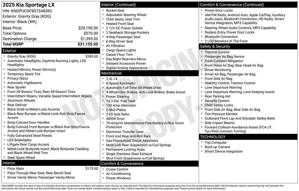 Gravity Gray 2025 Kia Sportage LX 4D Sport Utility AWD 8-Speed Automatic I4 23/27 City/Highway MPG