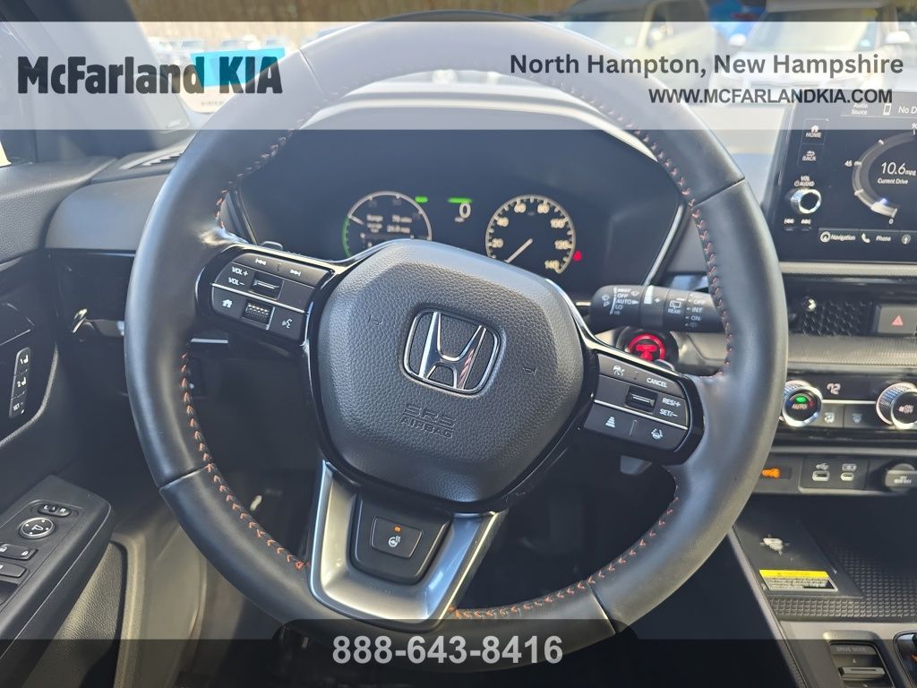 Alluring 19-inch Berlina Black Alloy wheels, a power liftgate, and rain-sensing wipers add a touch of elegance and practicality to this exceptional SUV. Discover the perfect blend of style, technology, and efficiency with this 2023 Honda CR-V Hybrid Sport Touring.