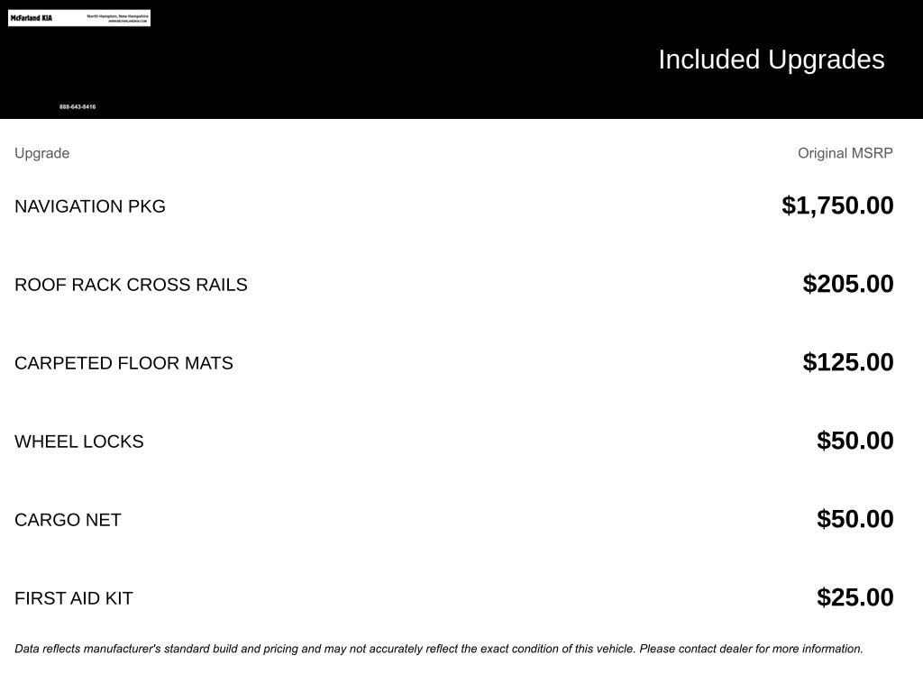 ⢠Navigation Package with Infinity audio system, Alpine navigation, Bluetooth, and Pandora internet radio