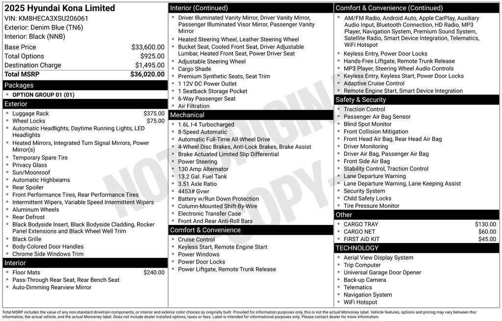Denim Blue Pearl 2025 Hyundai Kona Limited 4D Sport Utility AWD 8-Speed Automatic I4 24/29 City/Highway MPG