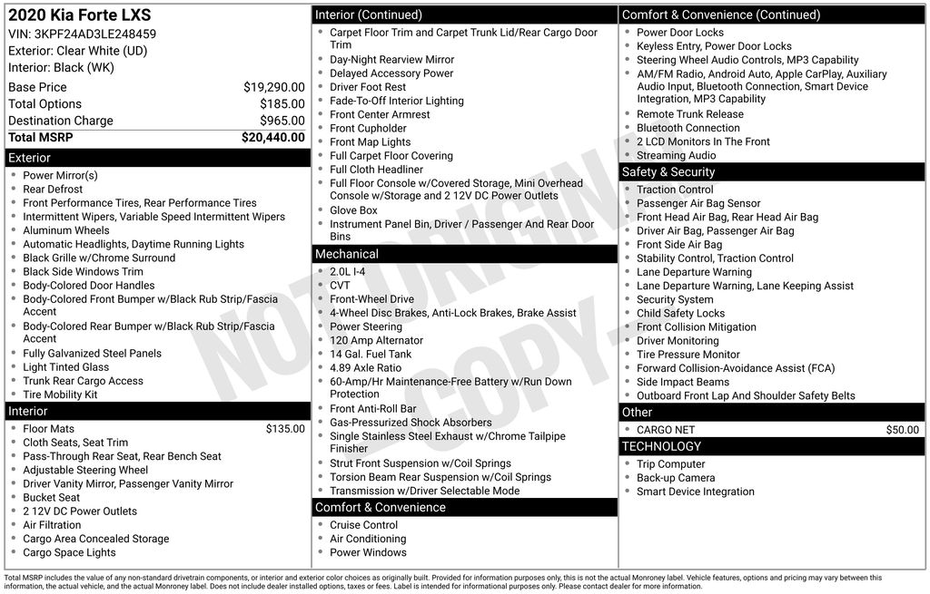 As you step inside the 2020 Kia Forte LXS, you'll be greeted by a welcoming and well-appointed cabin that seamlessly blends style and function. With its impressive fuel efficiency, advanced technology, and comprehensive safety features, this compact sedan is the perfect companion for your daily commute or weekend adventures.