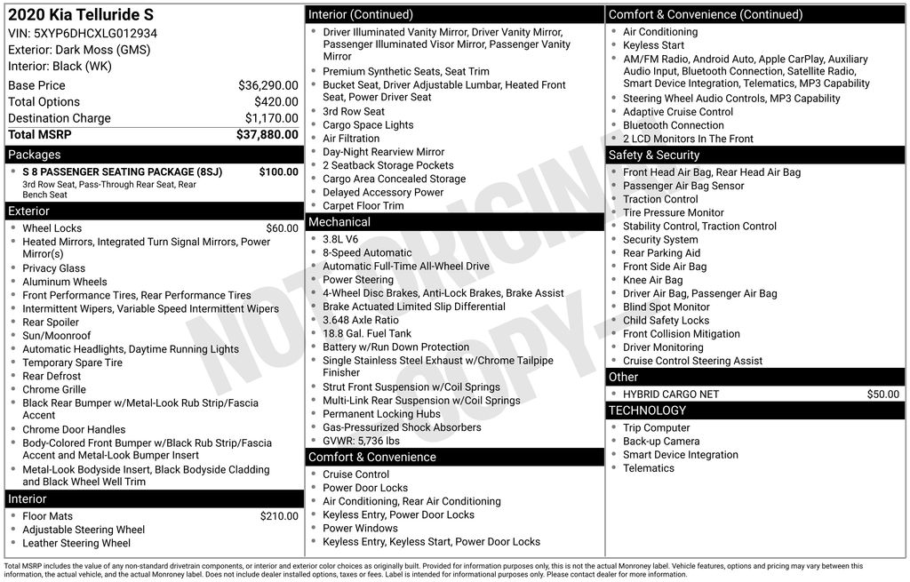 Discover the perfect blend of style, capability, and comfort in the 2020 Kia Telluride S. This impressive SUV is ready to elevate your driving experience and take you on unforgettable adventures.