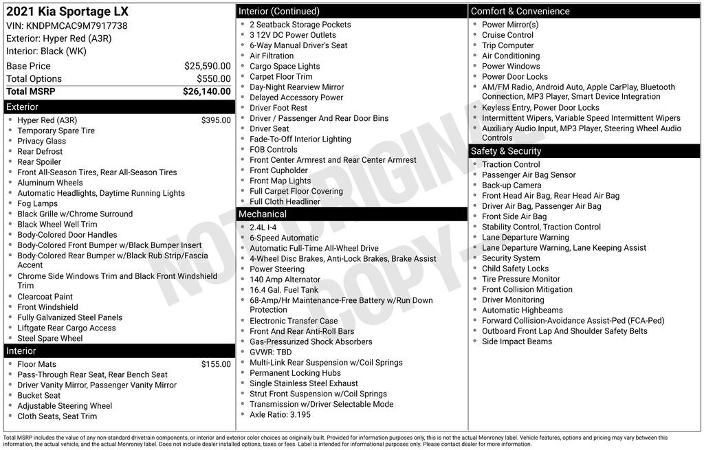 Hyper Red 2021 Kia Sportage LX 4D Sport Utility AWD 6-Speed Automatic Electronic with Overdrive 2.4L I4 DGI DOHC 16V