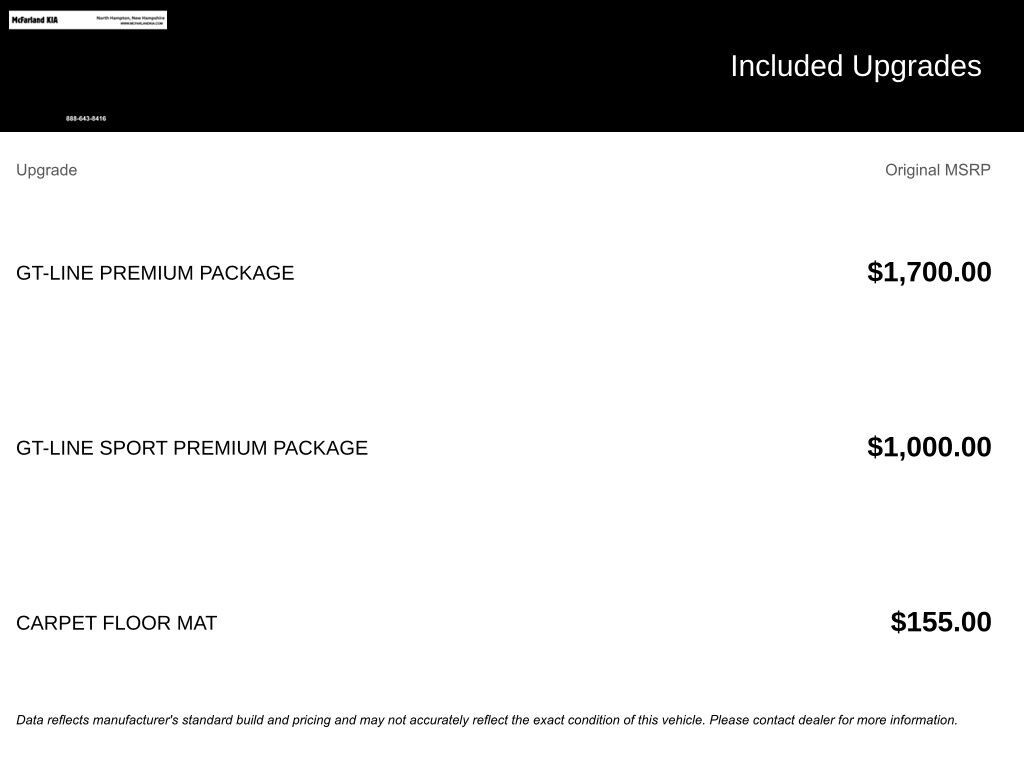 If this vehicle doesn't meet all YOUR criteria, reach out to the Sales Department to speak with a pre-owned specialist to discuss all YOUR transportation needs! With access to hundreds of quality pre-owned vehicles, we can find the perfect car for YOU! Get the best bang for YOUR buck at McFarland Kia! We can be reached at 603-758-3180, or visit our showroom located at 137 Lafayette Rd. North Hampton, NH 03862. We look forward to putting the right vehicle in YOUR driveway!