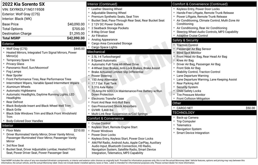 Wolf Gray 2022 Kia Sorento SX 4D Sport Utility AWD 8-Speed DCT 2.5L I4 DGI Turbocharged DOHC 16V LEV3-ULEV70 281hp 22/27 City/Highway MPG
