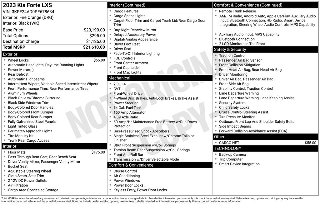 Fire Orange 2023 Kia Forte LXS 4D Sedan FWD CVT 2.0L I4 MPI 28/39 City/Highway MPG