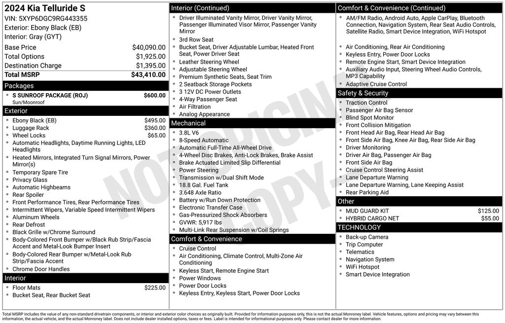 Experience the exceptional craftsmanship and attention to detail that sets the 2024 Kia Telluride S apart. Visit our showroom today and let us demonstrate how this remarkable SUV can enhance your driving experience. We're confident you'll be impressed by its unbeatable combination of style, performance, and value.