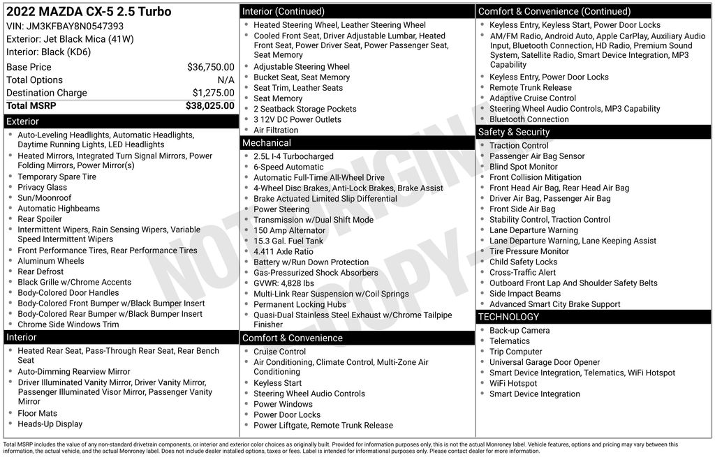 Whether you're embarking on a family road trip or tackling your daily commute, the 2022 Mazda CX-5 2.5 Turbo is the ultimate companion. Experience the exceptional craftsmanship, dynamic performance, and unparalleled features that make this SUV a true standout in its class. Visit our showroom today and let us demonstrate why the CX-5 2.5 Turbo is the perfect choice for your next vehicle.